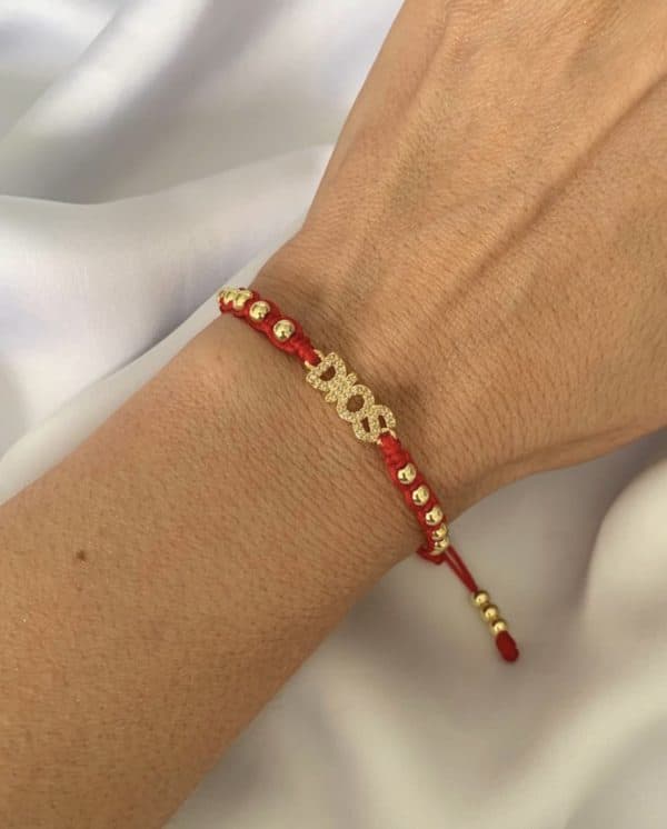 Pulsera ajustable hecha en rodio, tejida en hilo macrame rojo.